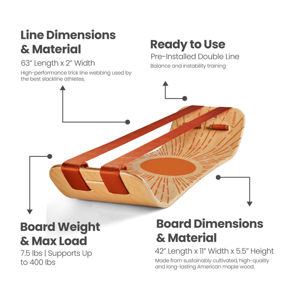 The SlackBoard Plus builds on the original, with the ability to convert between a two-line and a one-line setup - ideal for kids, rehab, beginners, or advanced instability training.